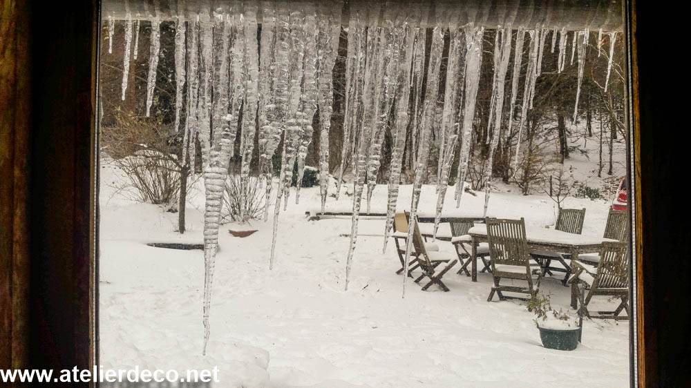 P.S. : Puisqu'il re-neige ce matin je partage avec vous cette vue (lundi) de notre véranda ;